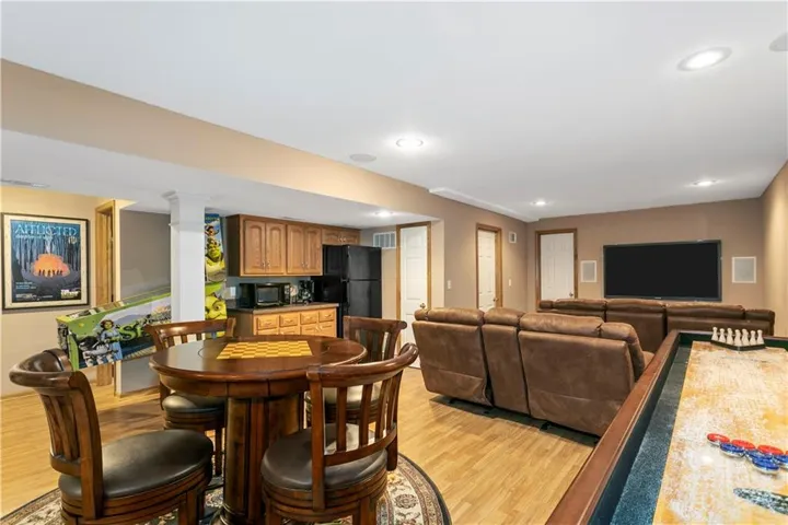 +"PublicRemarks": "Welcome to 10501 NE 97th Terrace in the sought-after Liberty School District! This property boasts so many features catering to both comfort and convenience. The spacious layout includes four bedrooms and three and a half baths, making it suitable for families of various sizes. The family room creates a cozy atmosphere with a custom gas fireplace and mantel, perfect for relaxing or entertaining guests. The eat-in kitchen is a highlight, equipped with gas stove, custom cabinets, updated backsplash, and huge pantry with easy access to the laundry room. The standout all-season room sits right off the kitchen, offering a lovely view of the backyard—ideal for enjoying outdoor vibes regardless of the weather. BONUS concrete stamped patio area tucked in close to the house. On the second floor, the master bedroom is a true retreat with its spacious layout and spa-like bath, which features a large vanity and jetted tub. Three additional well-sized bedrooms can serve various needs, whether for family, guests, or as home offices. For additional entertainment, the downstairs recreation area offers a kitchenette, theater sound and seating, full-size game consoles, and a game table—all of which will remain with the property, making it perfect for family time and large gatherings. The location is also a major plus, within walking distance to shopping, schools, and parks, allowing for an active lifestyle. Lots of extras…tankless water heater and humidifier, all appliances including chest freezer stay, heated garage with 220-volt outlet, new windows on the front, and new storm and front door. TONS of storage. With friendly neighbors and a massive backyard, this house truly offers a welcoming community feel."