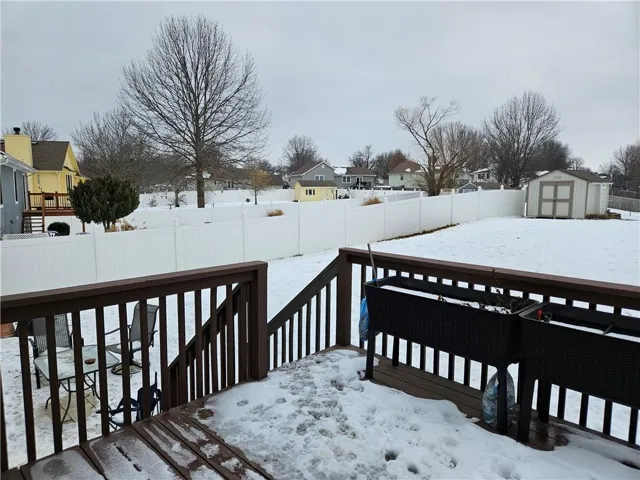 +"PublicRemarks": "PRICE DROP AND SELLERS OFFERING $3500/AT CLOSING OR CARPET ALLOWANCE! BRING AN OFFER! Don't miss out on this beautifully updated California Split with lots of charm and character. Walk up to an adorable covered porch- perfect for sipping your morning coffee. Enter into a large living room with lots of natural light and tall vaulted ceilings-Opened up to large kitchen and dining area with freshly painted cabinets, granite counter tops, pantry and wood flooring, with option of electric or gas stove. Step out on to nice deck with stairs overlooking large fenced in yard with storage shed and concrete area perfect for green house, basketball court or fire pit. Lower level family room with custom built-in book case. family room also has a walk out to travitine tile perfect for grilling or entertaining. Lower level family room also enters into garage. Master bedroom features large walk-in closet and entry to a heavenly oasis master bath with whirlpool tub, separate shower, another walk in closet and double sink vanity. Laundry on the bedroom level (also has option of gas or electric hook up) with built in shelves and linen closet. All bathrooms have beautiful tile flooring. Freshly painted walls and trim throughout home. Updated light fixtures, new garage doors (my Q garage doors can connect to wi-fi, and epoxied garage flooring. New 5 ton HVAC system. AT&T fiber available. Large unfinished basement with concrete steel reinforced storm shelter. Basement can be easily finished for even more space. Home has smart thermostat and security system- equipment stays with home (camera on doorbell and back yard and bedroom). Community pool included in neighborhood amenities. So much to list for this well cared for must see home!"
