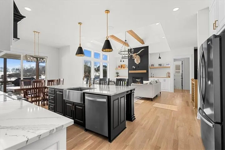 +"PublicRemarks": "Welcome to this stunning luxury modern farmhouse in Millstone- A perfect blend of elegance and comfort. This home offers 3,632 sq. ft. of meticulously crafted living space with a masterpiece of style and functionality. Step into a realm where every inch of this home exudes artistry and sophistication from the soaring ceilings and bold spiral lighting, every detail of this home showcases elegance. The inviting great room with built-in speakers centers around a gas fireplace and custom bookshelves. Gaze upon the gourmet kitchen, a true culinary masterpiece featuring custom cabinetry, pot filler, and stunning countertops that invite creativity and inspire culinary adventures. A walk-in pantry with a convenient grocery door from the garage adds a touch of practicality to this beautiful home. This home features a stunning black-and-white palette accented by brushed champagne gold fixtures, creating a timeless and elegant atmosphere. The master suite offers a private retreat, highlighted by a barn door entrance to the bathroom. Pamper yourself with a large vanity, a makeup station, a luxurious 7-foot-tiled shower with double shower heads, and plenty of natural light. The master walk-in closet has pull-down rods for easy organization. Hunter Douglas electric blinds throughout the home add a refined touch to the space. The expansive lower level continues the luxurious feel, featuring a large rec room/family room with a gas fireplace and a stunning mirrored glass bar complete with built-in speakers, perfect for entertaining. A spacious fourth bedroom with a fireplace and a beautifully appointed third bathroom with a large tiled shower. Step outside to your tranquil 0.84-acre lot, offering the ultimate privacy. The outdoor living space features a spacious patio with a propane fire pit, ideal for enjoying peaceful evenings and hosting gatherings. This home is located in Savannah School District. Home Warranty Also Included."