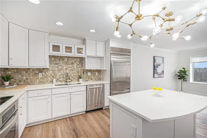 +"PublicRemarks": "Spectacular updated 2 bedroom, 1 bath condo in the highly sought Sulgrave-regency Condominiums, located in the Regency building. The condo is on the 10th floor overlooking Kirkwood green space which adds a serene, natural touch. There’s Abundant natural light that makes the condo bright throughout. The open floor plan starts with a beautifully renovated, and updated kitchen and leads into and expansive dining and living room space. The bathroom is Fully updated bath with double vanity, shower, and walk-in closet with laundry located in unit. New updates to the unit include all new lighting fixtures, interior paint, wall-mounted, built-in closet systems in both bedrooms, blinds, carpeting, and more! The condo includes a garage parking spot and indoor storage unit, both conveniently located on the 2nd floor. The condominium has all the major amenities that make city living worthwhile: 24hr security, outdoor pool / join, 24hr fitness center, theater room, chefs kitchen, and event space … the list goes on! Enjoy living walking distance to Country Club Plaza and Loose Park! The unit is move-in ready … do not miss the opportunity to own this gem!"