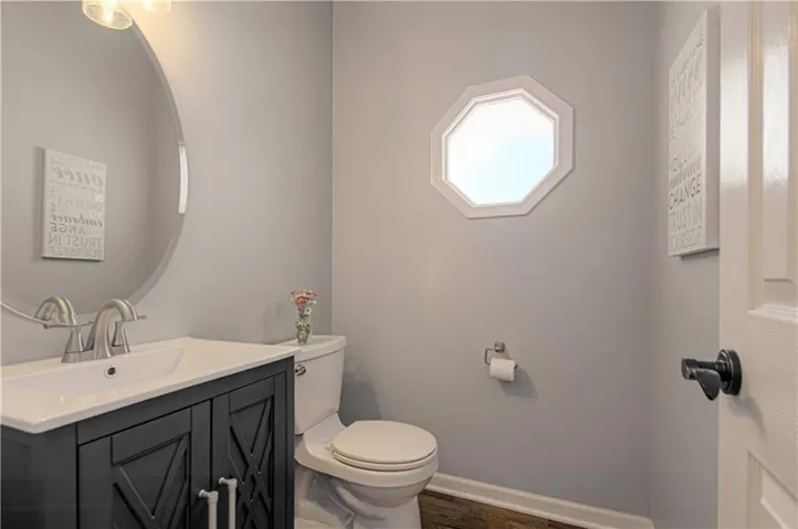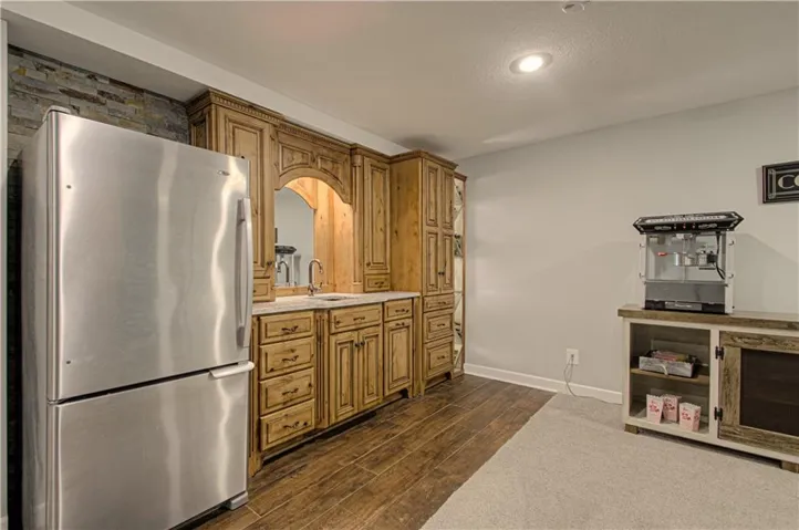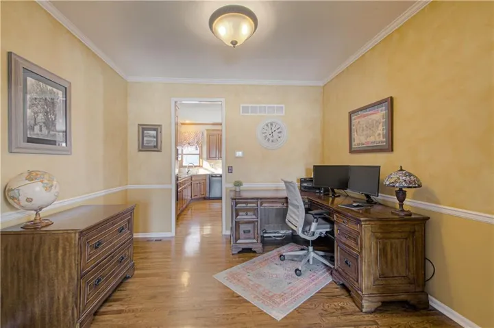 Inside, the home features refinished hardwood floors that were completed in 2021, creating a sleek and welcoming atmosphere throughout the main level. The office/dining room also received an upgrade with beautiful wood floors, adding to the home's timeless appeal. The kitchen, updated in 2012, showcases quartz countertops and all black appliances, providing both style and functionality for culinary enthusiasts. Additionally, the lower level offers an expansive TV area with built-in speakers and game space, perfect for family entertainment, along with a kitchen area that can easily accommodate a full-size refrigerator. A half-bath & plenty of storage round out this perfectly appointed lower level!\r\n