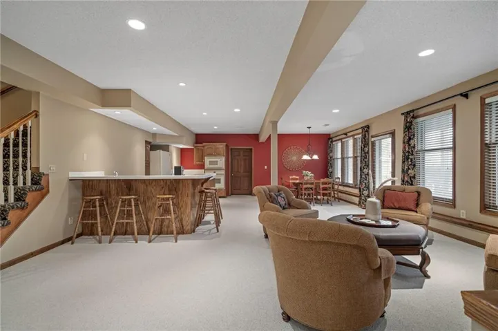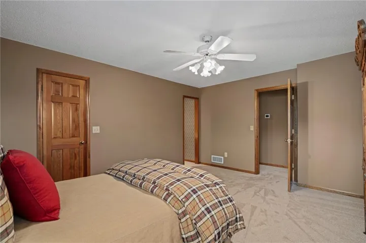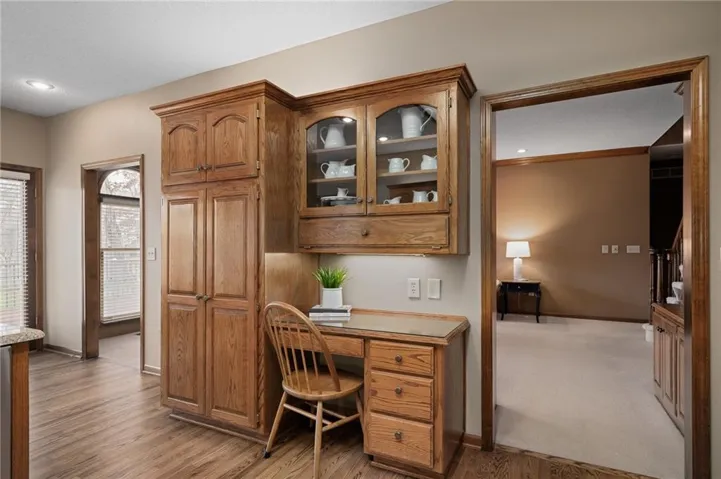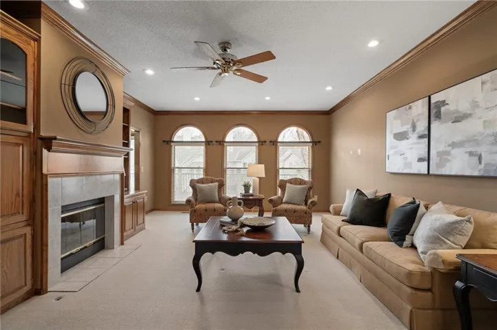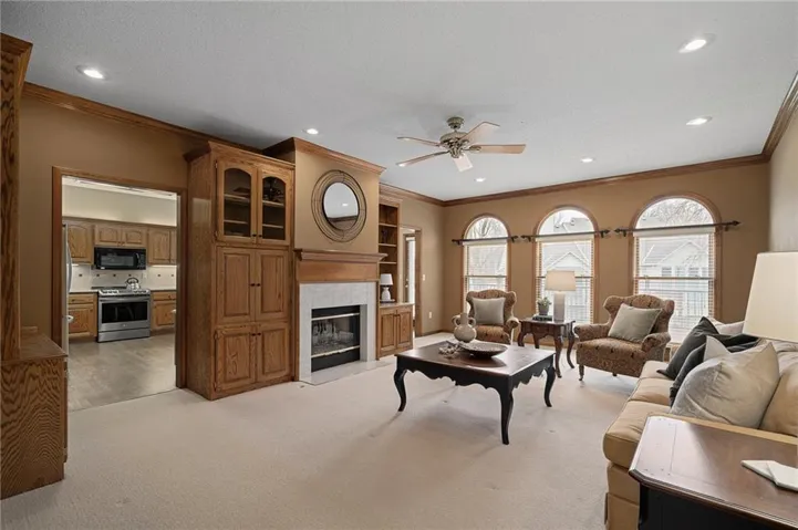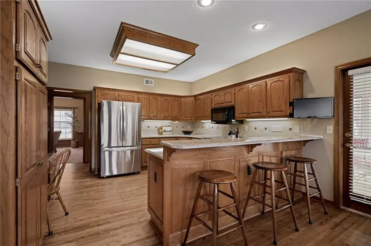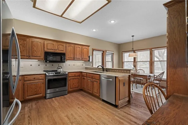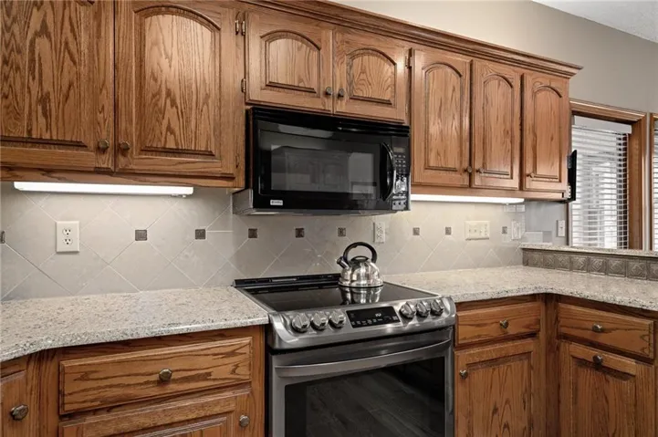 +"PublicRemarks": "Stunning 1.5 story brick home on a corner lot in Lenexa.This pristine home in the sought-after Oak Hill subdivision offers an excpetional blend of elegance and functionality.Situated on a beautifully landscaped corner lot,this residence features landscaped lighting in front of home, brick front w/stone window sills,deck,patio and 3-car garage w/nominal 9' wide garage doors (provides extra space between parked vehicles) w/3 floor drains and soaring ceilings.Enjoy year round comfort with zoned heating and cooling(main level & basement; upper level).The main level boasts 9ft ceilings, spacious primary suite w/a charming bay window, formal dining room, a cozy fireplace in the living room w/built-ins, an eat-in kitchen w/gorgeous hardwood floors, granite counters, stainless steel appliances including electric induction top-range and brand new refrigerator. Off the kitchen enjoy the sunroom w/natural light; it provides the perfect space for relaxion or entertaining. Upstairs you will find four generous bedrooms, each with a walk-in closet and two convenient Jack and Jill bathrooms; a large bonus room for crafts or storage, and a cedar closet. Need closets?This house has plenty including several linen closets.The walk-out lower level is an entertainer's dream complete with a full kitchen(built-in oven, microwave, full fridge), bar, rec area, game area and tv area, full bath, 8.5ft ceilings and workshop w/radiant heat; so much space in this lovely home.You'll be impressed with double-hung thermopane wood frame windows w/storm windows, immaculate wood trim and 6 panel-wood doors. Enjoy the professionally landscaped yard, offering both beauty and privacy. Meticulously maintained and move-in ready, this home is a must-see! Oak Hill offers neighborhood sponsored events, pool, and professional maintenance of common areas.Close to schools,Lenexa City Center,restaurants,shopping and highways.*INFORMATION DEEMED RELIABLE BUT NOT GUARANTEED. BUYER/BUYER AGENT TO VERIFY MEASUREMENTS*"