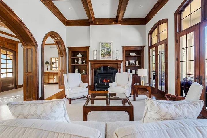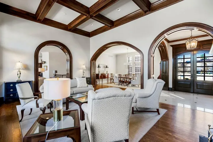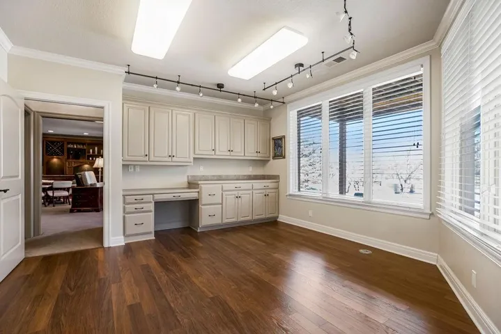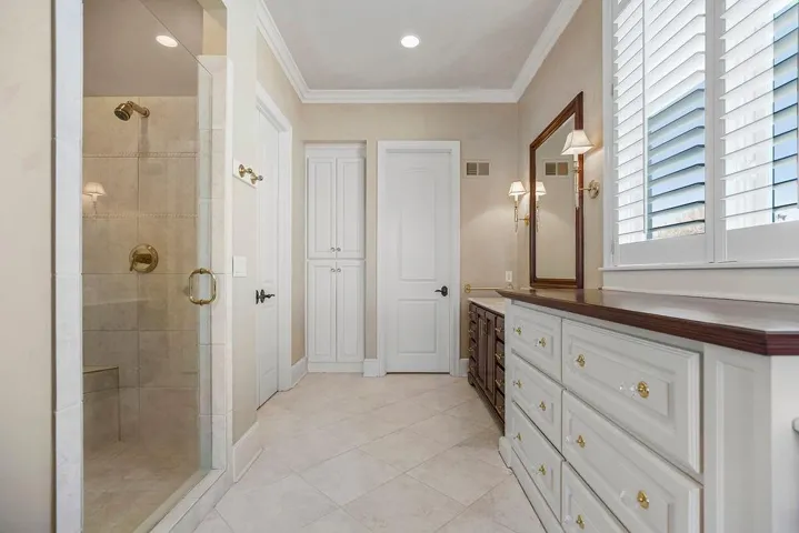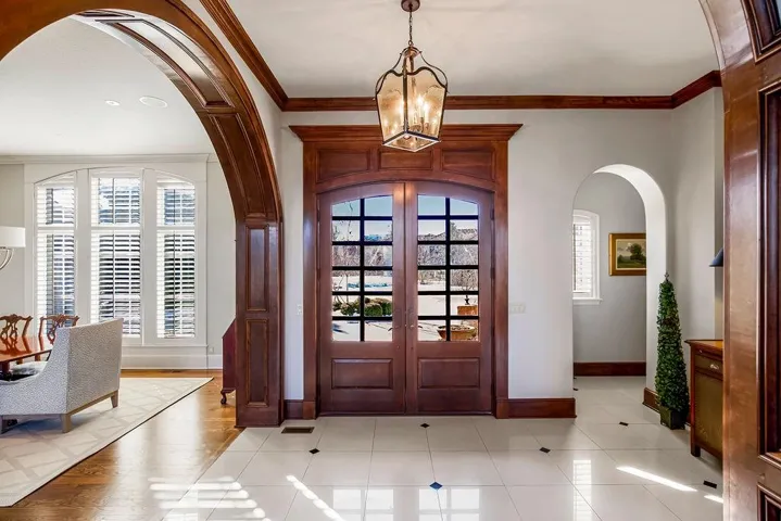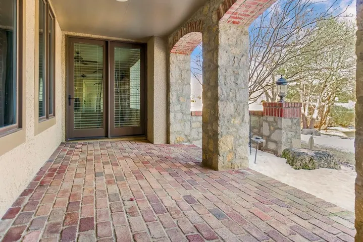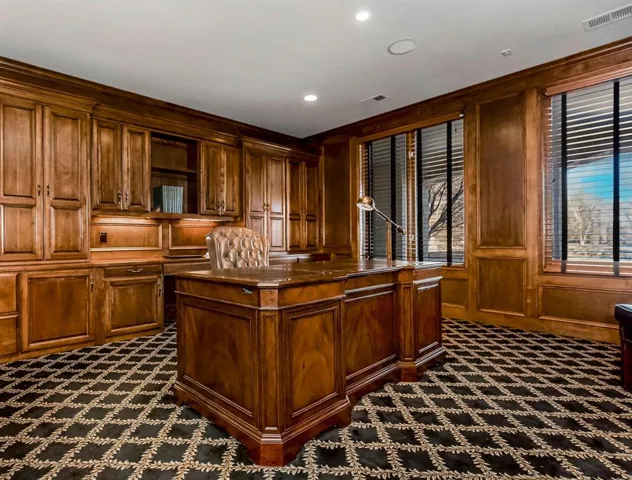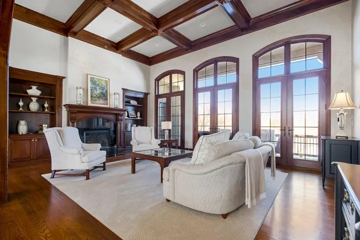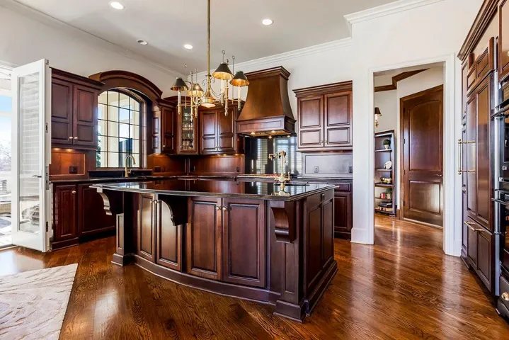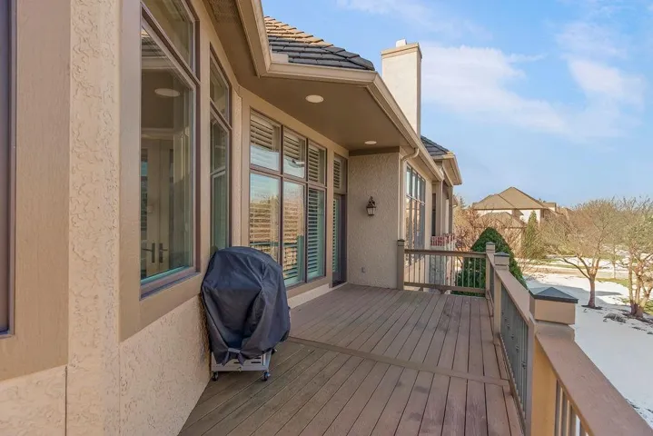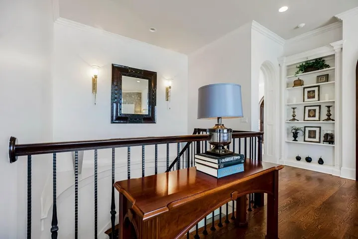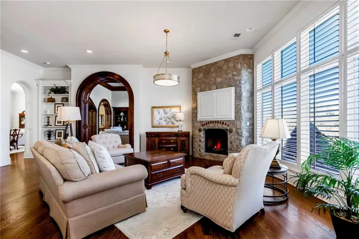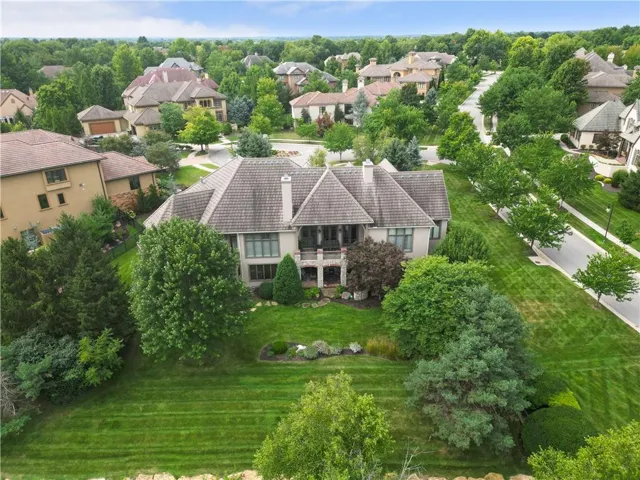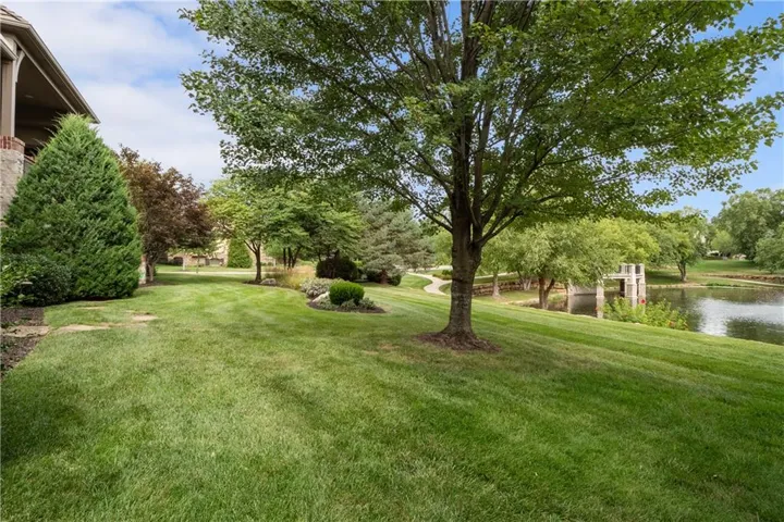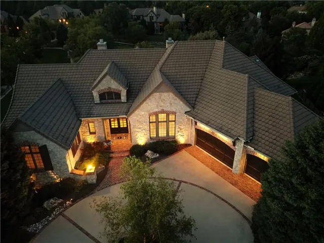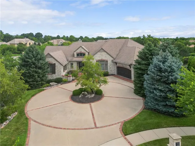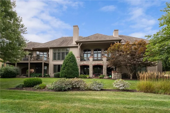 +"PublicRemarks": "Welcome to this stunning Estate backing to water on an incredible lush corner lot. This home will exceed all your expectations. As you enter you are welcomed with the custom full circle drive & exquisite exterior details. The stone exterior with intricate brick details compliments this home perfectly. The side entry garage & tile roof are just small details of this complete package. As you enter you are presented with a gorgeous entry of custom mill work, tile entry and lush wood floors throughout. This open floorplan offers wonderful flow. The main level great room is crisp offering soaring ceilings with a box beamed ceiling, custom millwork & lovely built-ins hugging the fireplace. The wall of windows and doors overlooking the pond and outside terrace set this room up perfectly. The formal living room offers gorgeous details like custom lighting, plantation shutters and wood floors. The kitchen is rich with detail. The cabinetry and granite, oversized island and eat-in area create a lovely combination. Don’t miss the professional appliances including built-in refrigerator, double oven, gas stove, newer Bosch dishwasher, new microwave, pot filler and more. The hearth room is so inviting with stone fireplace and additional terrace. The cozy 3 season room is perfection with tile floors and sun-soaked windows. The master suite offers lovely carpet, high ceilings, custom plantation shutters & an ensuite bath fit for a king. The double sink vanity, jacuzzi tub, walk-in shower, heated floors & oversized master closet are perfect for this space. The lower level is amazing with lots of flex space. The family room is cozy & overlooks the pond. Adjacent to this is the wet bar with bev fridge & custom cabinetry. There are 3 spacious bedrooms, oversized custom office with rich wood work & cabinetry, flex room great for an additional bedroom, play room, or any space you need. Don't miss the 2 storage areas. So many perks to this home including many upgrades. This is a must see!"