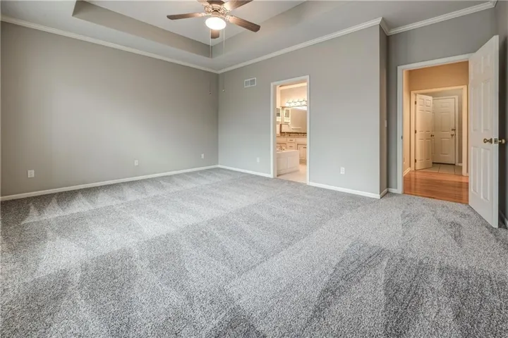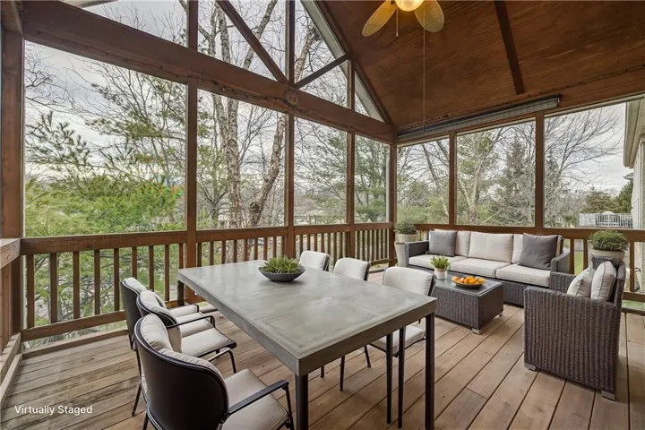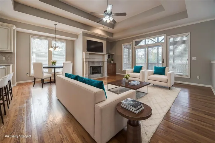 +"PublicRemarks": "Immaculately maintained Reverse 1.5-story home in the highly desirable Villas of Fairway Woods. This move-in ready gem offers a well-appointed floor plan with formal living and dining rooms, ideal for hosting gatherings. The open-concept kitchen is a true entertainer’s dream, featuring hardwood floors, a spacious breakfast area, center island, and pantry. Cozy up by the great room fireplace or unwind in the expansive primary bedroom suite, complete with a luxurious whirlpool tub, dual vanities, separate shower, and a massive walk-in closet. Step outside to the stunning screened-in deck with a tongue-and-groove ceiling and ceiling fan—perfect for enjoying serene evenings. The walkout lower level features a spacious rec room and two additional bedrooms (one with upgraded luxury vinyl plank flooring), along with a stylish Hollywood bath. Updated features include a newer HVAC system, radon mitigation, silent floor system, new carpet, and a large cedar closet ideal for storing clothes and seasonal items. The unfinished portion of the basement offers ample storage and built-in shelving. The epoxy-coated garage floor ensures easy cleanup and durability. Outside, enjoy summer nights on the screened-in porch, covered patio, or the second open-air patio perfect for grilling. Fresh interior paint throughout adds a bright, modern touch to this already exquisite home. Don’t miss the opportunity to make this beautiful property yours!"