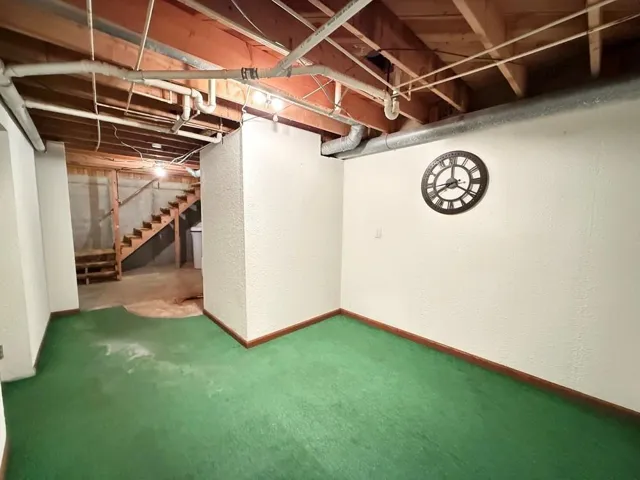 "LongDescription" => "Carpeted living room featuring stairs and a textured ceiling"