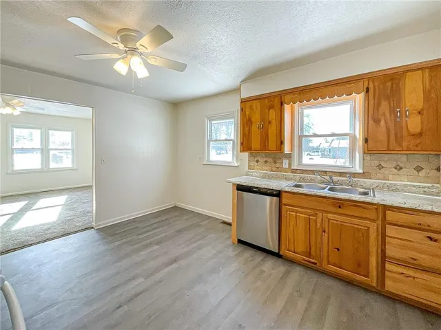 +"PublicRemarks": "Clean, spacious and move in ready home, sitting on a quiet location, just across the street from the Katy Trail. Welcoming covered porch with swing. Nice living room with new carpet, ceiling fan and built ins. Eat in kitchen with lots of storage, new flooring, tiled back splash, ceiling fan, oven/range and brand new dishwasher. 2 bedrooms on the main level, both with ceiling fans, new carpet and double closets.3rd bedroom on the second level with attached bonus room that could be office or 4th bedroom. Oversized laundry room with new flooring and built ins. Breezeway from home to garage with sliding glass doors to covered porch. Maintenance free vinyl siding, vinyl double hung thermal pane windows and architectural shingle roof. Central heating and cooling system with gas furnace. located on a corner lot with attached 1 car garage and storage shed."