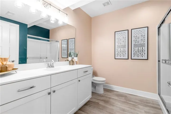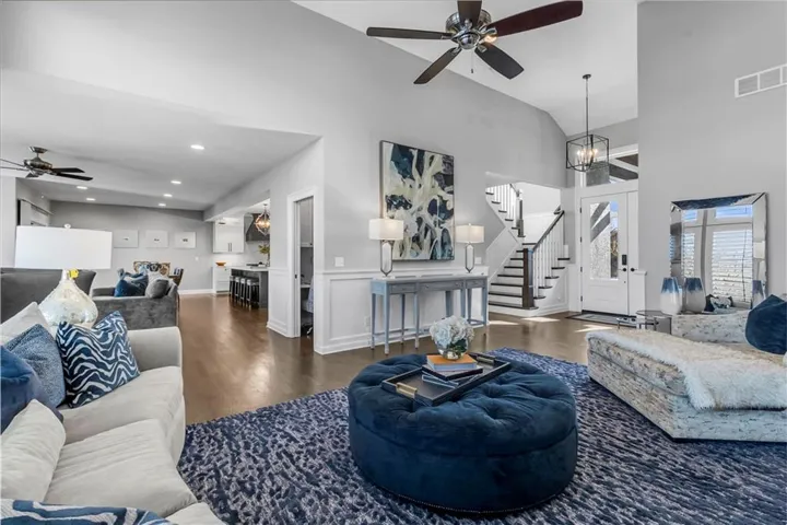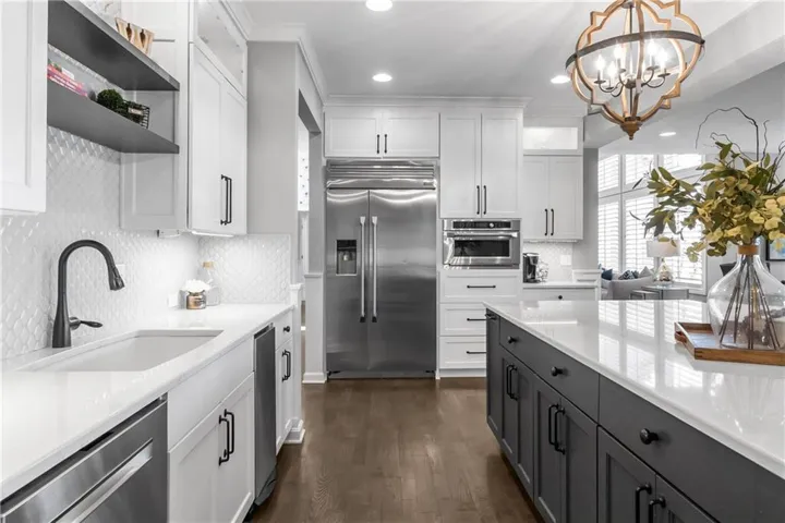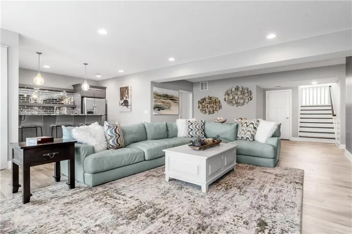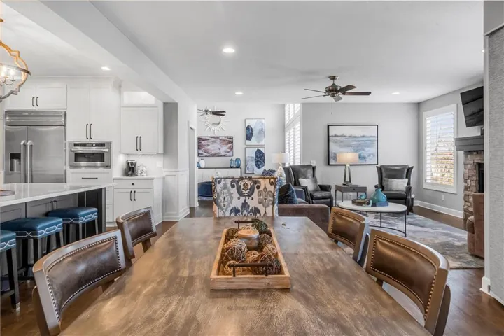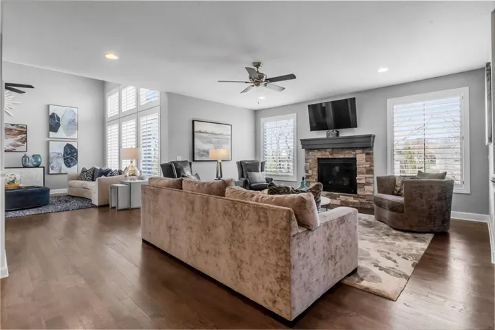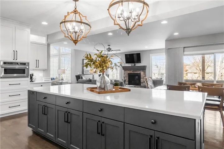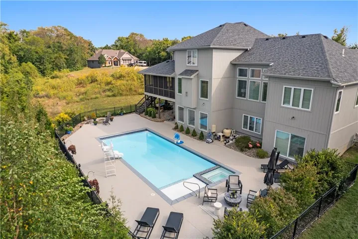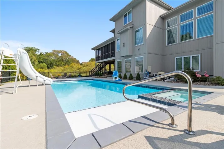 +"PublicRemarks": "Welcome to this spectacular craftsman 1.5 story home on an amazing lot. You will fall in love with the truly amazing private backyard with its very own salt water pool and hot tub. The built in firepit offers a fun place to hang out on cooler evenings. Enjoy seamless indoor/outdoor living with a screened in porch featuring Trex decking, a cozy gas fireplace and views of the backyard. Every detail of this home has been carefully selected. From the moment you enter this home, you are greeted with stunning views from the large living room windows and the tranquility this home has to offer. Vaulted ceilings, expansive picture windows, formal living room, and a stone fireplace in the hearth room creates the perfect ambiance. Spacious primary suite features a spa like bathroom, an incredible walk-in closet and is connected to the main floor large laundry room. Three secondary bedrooms and a fun loft are located on the second floor. The gourmet kitchen is a chef's dream, complete with an extra large quartz island, walk in pantry, gas stove, double oven and eat in kitchen. Plantation shutters and designer wallpaper add an extra touch. You will find an expansive walk out finished lower level with a large wet bar, lots of windows, tile plank floors, 5th bedroom (set up as a workout room now), 4th full bathroom and lots of storage. The 3 car garage has epoxy floors and extra shelves for storage. This home delivers both style and functionality and is located on a cul de sac. Close to great schools, shopping, restaurants and entertainment which makes it perfect for luxury and convenience. Why build new when this home has it ALL!"