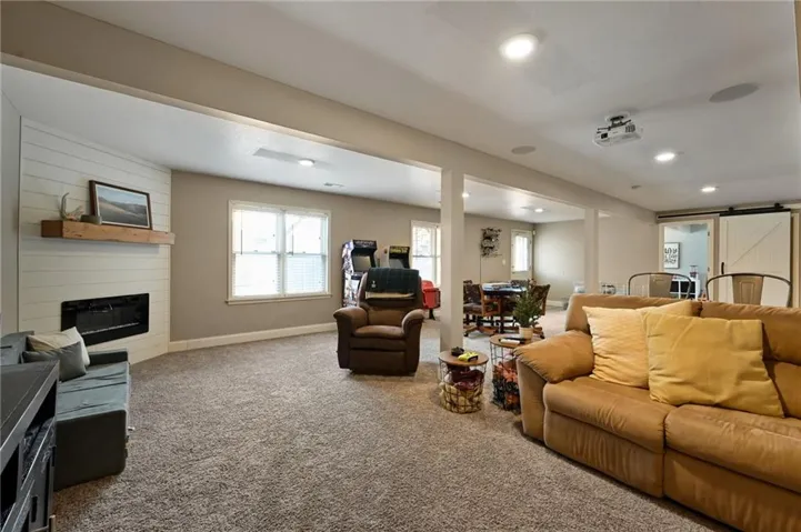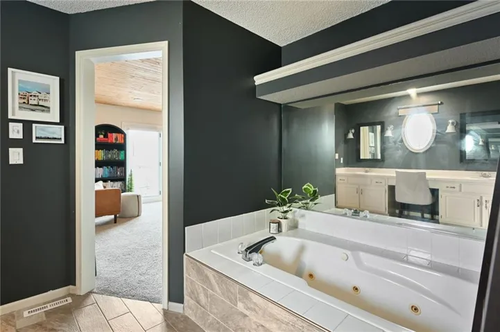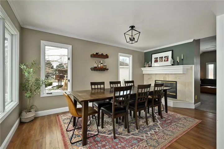 +"PublicRemarks": "This stunning 4-bedroom, 3.5-bath home boasts over 3,200 square feet of thoughtfully updated living space. A fifth non-conforming bedroom in the fully finished, walk-out basement adds flexibility for guests, a home office, or a hobby room. The home features new plank flooring, trim, and fresh paint throughout, plus a refreshed kitchen featuring a stylish backsplash and painted cabinets. The open-concept main floor flows seamlessly from the dining room to the great room, complete with a see-through fireplace for cozy ambiance. The main-floor master suite offers a serene retreat with an en suite bath and walk-in closet. Upstairs, find two additional spacious bedrooms, all with walk-in closets. Downstairs, includes the fourth bedroom and the expansive updated rec room includes a new fireplace, perfect for entertaining. Step outside to the newly poured patio with a built-in firepit and seating. The large backyard features a new privacy fence, making it ideal for relaxation and play. Additional highlights include a new secondary HVAC system and water heater for peace of mind. Don’t miss your chance to own this beautifully updated home!"