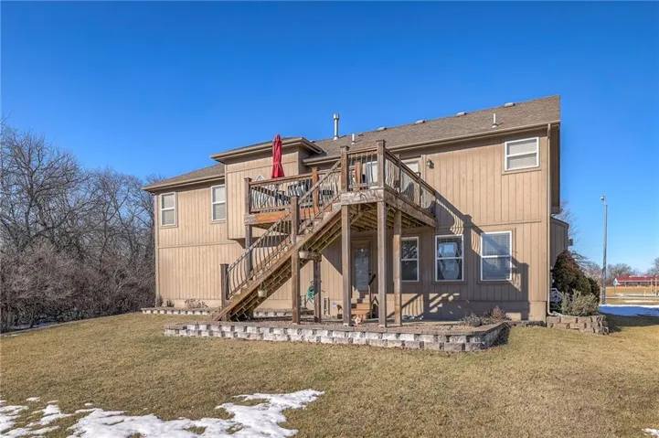 +"PublicRemarks": "Welcome home to this beautiful, move-in ready, 3-bedroom, 2.1-bathroom, 3-car garage home situated on one of the best lots in the neighborhood! As you enter, you will be greeted with tons of natural light, soaring ceilings, and a bright, open floor plan. Warm and inviting living room features gorgeous millwork and cozy fireplace. Eat-in kitchen is bright and airy, complete with hardwood floors, a kitchen island and plenty of cabinetry. The lovely primary suite boasts a fantastic bathroom with a double vanity, large shower, jacuzzi tub, and walk-in closet. The secondary bedrooms share a well-appointed bathroom, and laundry room is conveniently located on the bedroom level. Walk-out lower level offers a spacious family room, half-bath, and a bonus theater room. You will also enjoy the beautiful oversized deck that overlooks the large backyard and covered patio. The deep three-car garage provides ample storage space. This charming home is the last house on the street and is conveniently located right across from the park. Great location, neighborhood pool, and walking trail...don't miss this one!"
