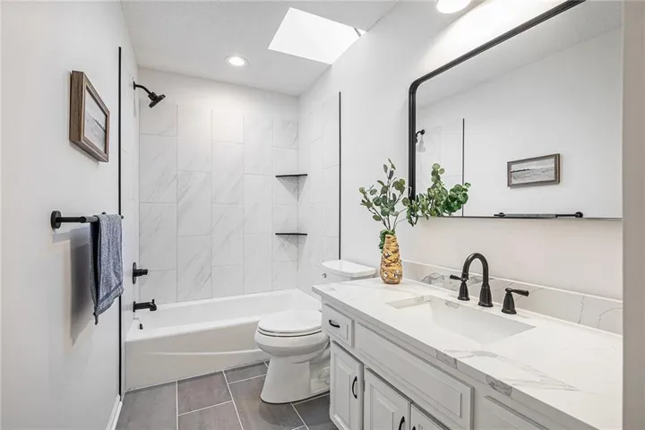 +"PublicRemarks": "Delightful in Dover! This traditional two story has been renovated from top to bottom with modern finishes and has plenty of space for families of all sizes - and the location couldn't be more convenient! Food, shopping, gyms, and of course the best schools all within just a few minutes. The first impression upon arriving is a great one: updated siding, newer windows, a 2-3 year old roof, new gutters, new exterior paint, a new sidewalk and new cedar shutters provides curb appeal that turns heads. Everything inside is cohesive, clean and new - from lighting to paint, windows to flooring, built-ins to bar and so much more. The kitchen is completely new with real wood shaker cabinets, top grade quartz counters, custom backsplash, and SS appliances including a peninsula with seating for three. Bathrooms are also entirely refreshed with new tile, paint, vanities and tops, mirrors and lights. The enormous primary bath features a vaulted ceiling with skylight, dual vanities, designer tile and a massive dual-head shower. The unfinished basement features unusual-for-the-area nine foot ceilings and open space to finish the perfect entertainment, play area or more bedrooms and baths. Wanting to enjoy the weather when it turns warm? The backyard is mostly fenced (just needing the back section) and has a newly poured 14x22 ft patio perfect for enjoying the weather before summer. Other big ticket items are in good shape like the furnace, AC, water heater and more. Come check out this value-packed home!"