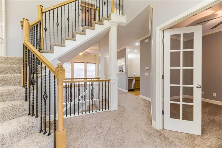 The great room features a cozy fireplace, an elegant woodwork package, and a wall of windows that flood the space with natural light.\r\n