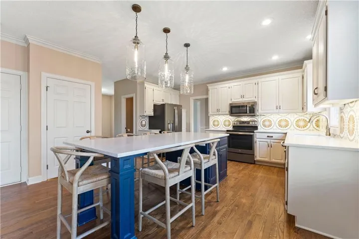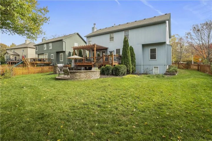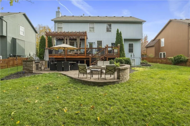 +"PublicRemarks": "COMING 2/14/25. You don't want to miss this entertainer's dream home. Highlights include new carpet, bathroom tile, and interior paint, a beautifully renovated kitchen with all-new cabinets, quartz counters, and a massive island with seating for seven. The kitchen opens to a cozy family room with a fireplace. Just outside are two great outdoor lounging and entertaining spaces. Off the main level is a large deck with a pergola, which overlooks the paver patio with a built-in gas grill, a gas fire pit, and a stone seating wall. The level, fenced backyard provides a safe place for kids and pets to run and play. The main level also boasts a living room in front (which can be used as an office), a formal dining room off the kitchen, and a convenient half bath. Upstairs are four bedrooms including the spectacular primary bedroom with stunning vaulted ceilings, an en suite bathroom with double vanities, a jacuzzi tub, and a large walk-in closet. All the secondary bedrooms have vaulted ceilings, making each feel larger and more open. Another surprising entertainer's dream is in the FANTASTIC finished basement. It includes an authentic-looking pub, with a full kitchen with granite counters, a full bathroom, and a large second living space, perfect for hanging out with family and friends, enjoying football games, and movie nights. It's just a short walk to the neighborhood pool and a walking trail that connects to the 1,234-acre Heritage Park with its 40-acre lake, 30-acre dog park, 18-hole golf course, plus soccer, football, and softball fields. Great location! A-rated Blue Valley Schools, close to shopping, dining, and highway access. Hurry, this one won't last long!"