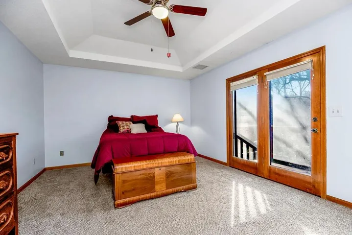 "LongDescription" => "Bedroom featuring LVP floors, ceiling fan, wood ceiling, and wood walls"