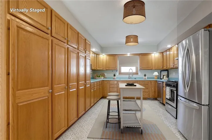 +"PublicRemarks": "Spacious 2,300' home on Corner Lot! No maintenance siding. Custom Kitchen with tons of cabinets, pullouts and organizer inner shelves. Gas stove! HUGE eating area to share with your family or company. They can be in the room without being under your feet. Large living room/Family room. Master bedroom has double closets in the room and a walk in closet in the master bath. Double vanity, whirlpool tub and skylight. Laundry room/mud room with door to keep laundry out of site. 4th bedroom could be an office or den. Basement is HUGE! Appears totally dry and solid! Furnace (2017), roof and 2 water heaters have been replaced. (not original). Don't miss this TRUE Ranch with ramp entrance from garage. Could be a great home for someone that wants everything on one level! Needs a bit of updating - but nothing you couldn't do after you move in. Pull down stairs to attic above garage. Attic exhaust fan. Central Vac. Use back door by garage to enter. Ibox haning on this door. Front door is being adjusted. FULL DISCLOSURE: Photos have been virtually staged. No furniture in home."