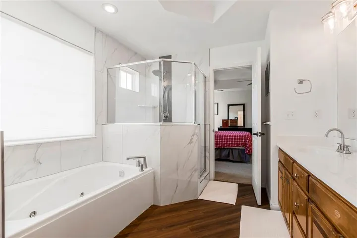 +"PublicRemarks": "Fabulous home located in quiet cut-de-sac w/huge fenced yard and large deck. Within walking distance to community amenities: Playground, Swimming pool and fishing pond. The home has great curb appeal with a side entry garage & lush landscaping. The bright kitchen boasts quartz counter tops plus kitchen island and separate breakfast room. There are hardwood floors throughout the 1st floor. The family room's focal point fireplace has gas logs for warm gatherings. **Newly updated master bath++High efficiency furnace w/Humidifier and Central Vacuum system**LL has an enormous rec room and in the un-finished area is stubbed for a bathroom. This well maintained home has easy access to the highway and is close to schools. Quickly come take a look..."
