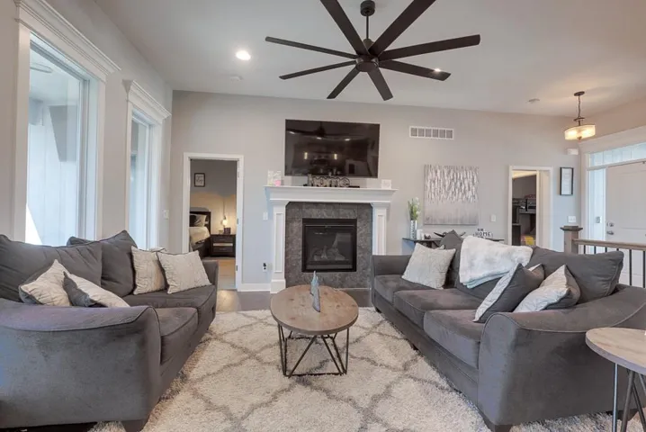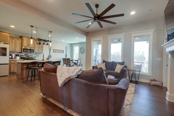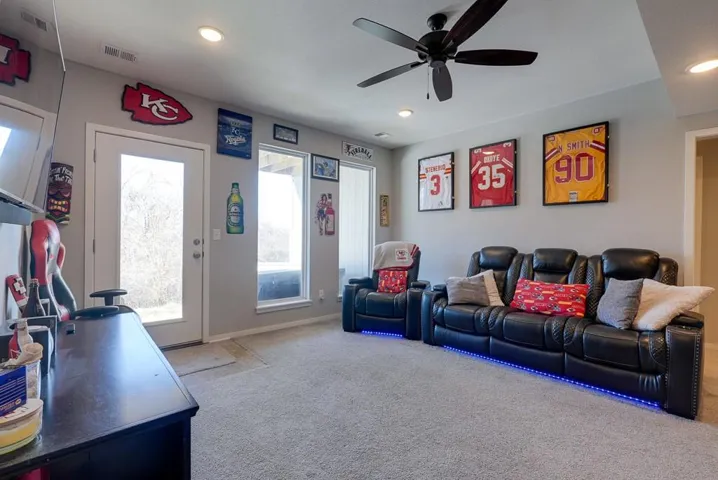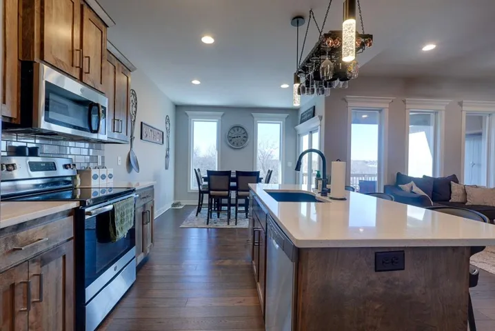 +"PublicRemarks": "Better than new true 5 bedroom reverse 1.5 story home. Open concept floor plan with large center island with beautiful granite counter tops, lots of large windows and fireplace in great room. Provides a warm and inviting layout. All bedrooms are good sized with large or walk in closets. Master bedroom and ensuite features large walk in closet, double sink and beautiful finish. Custom cabinets, lots of closet space, large pantry, laundry /mud room on main level. Master and second bedroom on main level. Three bedrooms, full bath and large rec room on lower level. Seller has added built in dry bar w/ refrigerator, Govee permanent lighting and ring camera system, two my Q smart garage door opener's AE Vehicle charging and electric vehicle charger in garage , ceiling fan on back deck and wifi extender. Very desirable subdivision with community pool and low HOA dues. Grain Valley schools. All you need to do is move in and start enjoying this beautiful home."