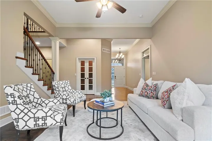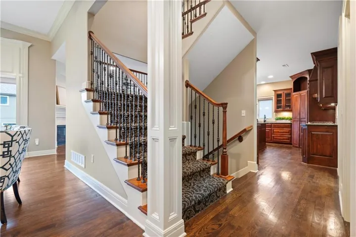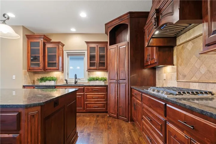 Stunning 1.5-story custom home by Carson Custom Homes, perfectly situated on a spacious corner lot in the prestigious Montebella neighborhood. This home is filled with natural light and offers a thoughtfully designed layout. The gourmet kitchen boasts a massive center island, granite countertops, hardwood floors, a walk-in pantry, and an industrial oven hood. A cozy hearth room with a custom fireplace complements the formal living room and eat-in kitchen.\r\n