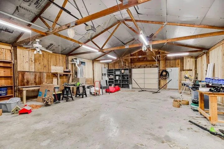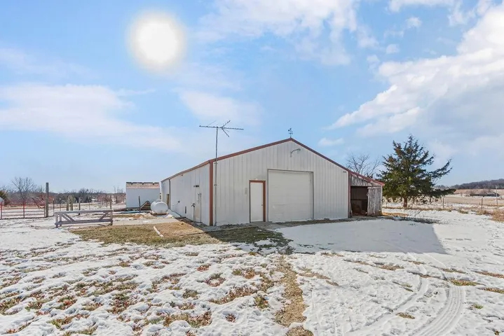 +"PublicRemarks": "Hard to find hobby farm on 4.45 acres! This 3 bed, 2 full bath/2 half bath Cape Code style home sits on a large fenced-in lot complete with a 30X40 foot heated/insulated outbuilding, chicken coop, raised garden beds, hay loft, horse stall and more. Many updates: metal roof , new thermal windows, and updated HVAC system. Start your day with coffee on the sprawling front porch and end it entertaining family and friends on the back patio. This is country life at its best! Main floor features vaulted ceiling and fireplace in the great room, wood floors in the vaulted entryway and kitchen, and spacious master bed and bath complete with a large walk-in closet. The second floor has two bedrooms with dormers and a full bath. The basement offers a carpeted rec room and half bath. The home is located in a peaceful subdivision situated among several acreages on 615th Rd. The owners have planted several fruit trees (apple, pear, plum, cherry and fig) as well as berry bushes and other edibles. Minutes from Lees Summit. Hurry, this one will not last!"