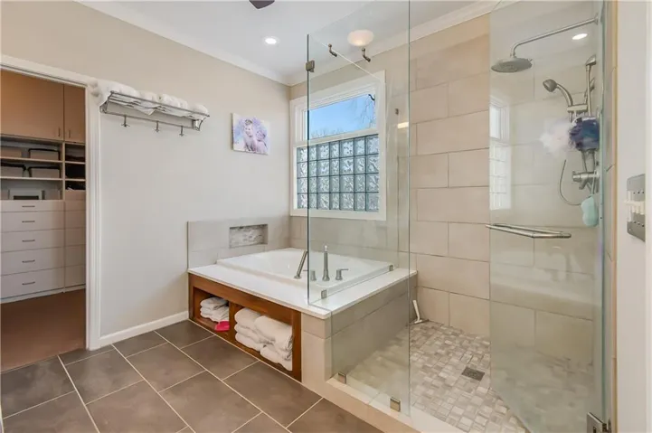 The finished walkout lower level provides even more living space, including a family room, wet bar, rec room, and an exercise room. Located on a quiet cul-de-sac, the home features a fenced yard and offers convenient lake access. The backyard has a gate and the side walk to the dock is just steps away. This home truly has it all!
