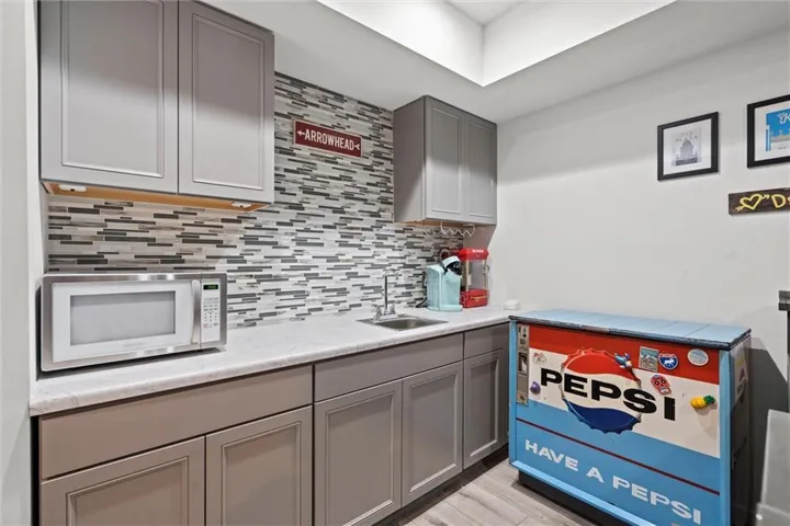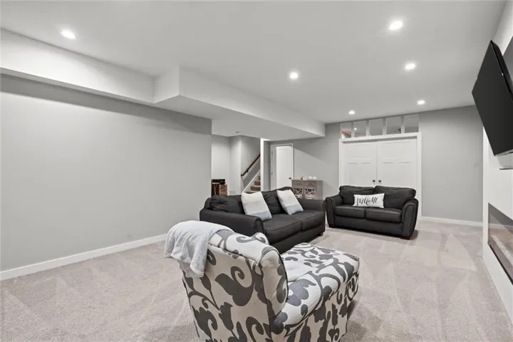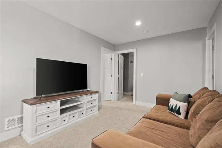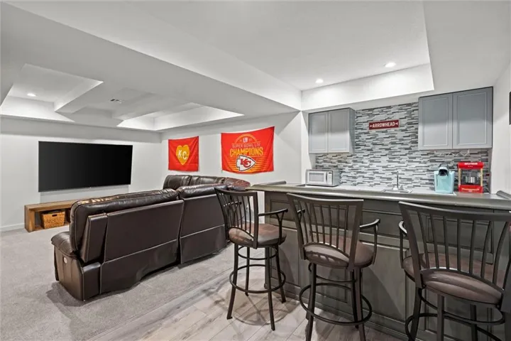 The basement adds more space for with an added bedroom, living room for another hang out space, then a separate space with a bar and Chiefs watch party area. \r\n