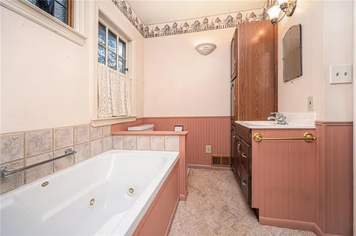 +"PublicRemarks": "Charming 1.5 story home brimming with potential, just waiting for your personal touch! Featuring an expanded primary bath w/walk in shower and jacuzzi tub. Laundry room on main level and hook-ups in lower level. Main level laundry can be converted back to a 2nd bedroom on main floor. Large fenced in yard with an area for a garden. Home has an added family room off garage. Spacious bedroom with a full bath upstairs. Conveniently located to shopping, hwy access just blocks away from a private country club. This is your chance to bring your vision to life and add your own style to this timeless gem."