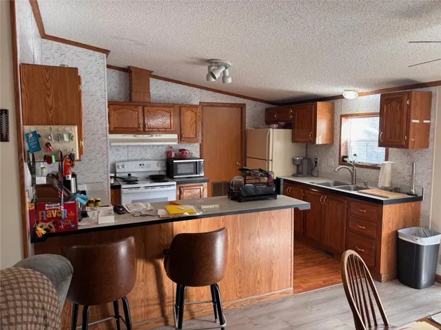 +"PublicRemarks": "This charming manufactured home sits on an acre of land and offers three bedrooms and two bathrooms with new flooring throughout. It features a brand new wood stove that significantly reduces your electric bill each month. Additionally, the home comes with a new home generator that runs on natural gas or propane, ensuring you're never without power. The property includes a two-car detached garage with a concrete floor and new door openers, as well as a shed and a large storage hut for all your storage needs."