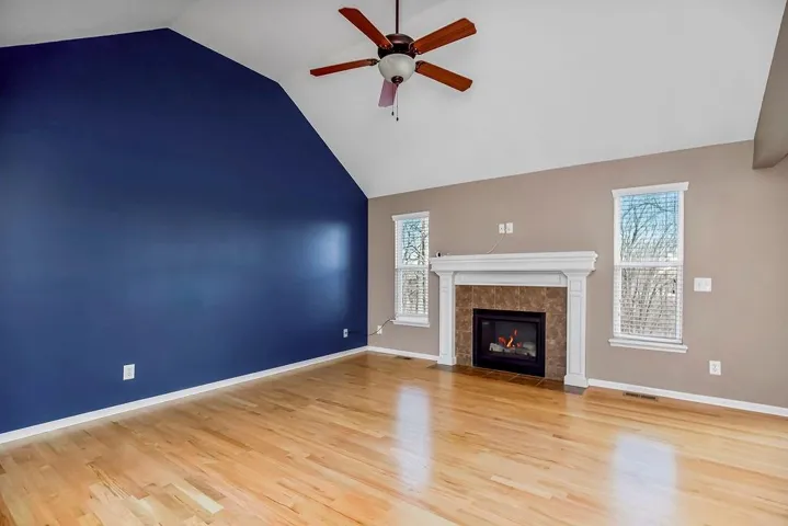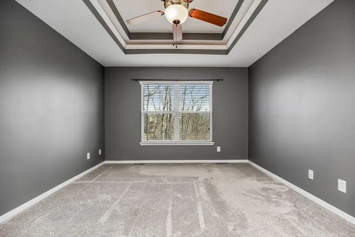 "LongDescription" => "Unfurnished room featuring a tray ceiling, ceiling fan, and light wood finished floors"