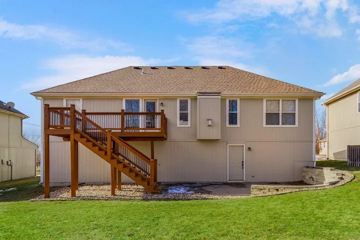 "LongDescription" => "Rear view of property featuring a hot tub, a deck, a patio area, stairs, and a fenced backyard"