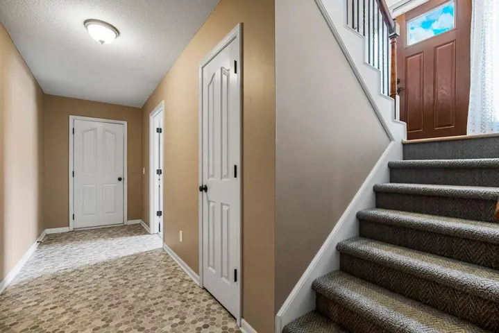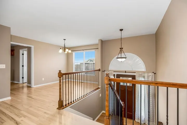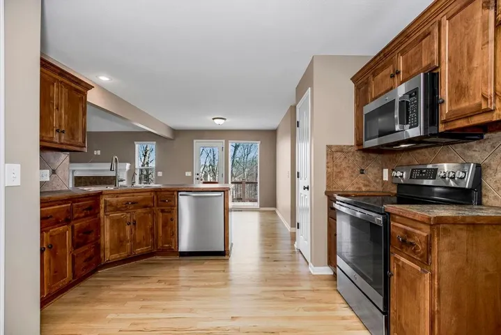 +"PublicRemarks": "Imagine yourself at home in this beautiful, open-concept retreat! The seamless flow between the family room, dining area, and kitchen—enhanced by gleaming hardwood floors—creates a warm and inviting space for everyday living and entertaining. The spacious master suite offers a true retreat, featuring a walk-in closet and a private bath complete with a whirlpool tub, dual vanities, and a walk-in shower. Two additional upstairs bedrooms share a well-appointed hall bath with a shower/tub combo. Full laundry room off the kitchen. Downstairs, the partially finished walkout lower level provides extra flexibility with a dedicated office or a non-conforming 4th bedroom. Step outside to enjoy the expansive backyard, where a large deck and extended patio offer the perfect setting for outdoor gatherings. With a serene tree-lined backdrop, this yard provides both privacy and beauty! Don’t miss this incredible opportunity—schedule your showing today!"