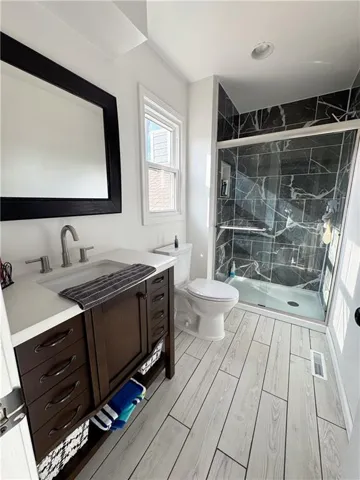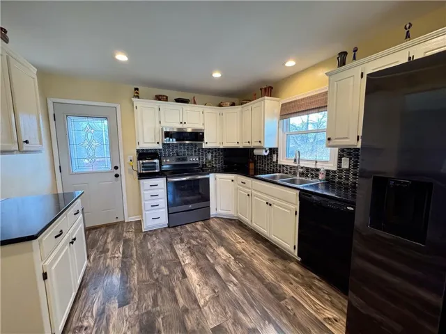 +"PublicRemarks": "Welcome to your beautifully updated home! This lovely 3 bedroom, 3 bath home has new flooring throughout, new exterior siding and paint, new windows, new interior paint, completely updated kitchen and baths and new water heater! As you approach your front door, you'll notice the new rail and spindles on your front porch, along with the new siding and paint. As you come in the front door, the living room greets you with a gorgeous vaulted ceiling and gas fireplace framed with bright windows! The kitchen is tastefully updated with quartz counters, new glass backsplash, flooring, painted cabinets and a great coffee bar. The primary bedroom is serene and tranquil with a trey ceiling, ceiling fan and an updated en-suite bath with spacious walk-in shower. The primary bedroom also has 2 closets. Bedrooms 2 & 3 are a great size with nice closets and ceiling fans. The basement is currently being used as a 4th non-conforming bedroom, but is very versatile and can be anything you need. Off of the basement room, is a bonus space with a gorgeous sliding barn door, built in shelves and is currently being used as a craft room. The full bath in the basement is completely updated with stunning tile and a large walk-in shower. Don't miss all the storage under the stairs! Walk out of your stunning kitchen to a large deck that overlooks the spacious, fenced yard, a great place for dinner, coffee or relax after a hard day with a cold drink! There's nothing to do but move in and relax."