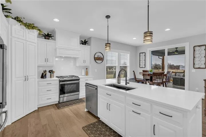 +"PublicRemarks": "PRICE REDUCED $18,000 SINCE LISTING ON 2/7/25! SELLER SAYS SELL! Forego the new and bring your buyers to this meticulously maintained home built in 2022! The current owners are second to none when it comes to creative ideas and adding quality upgrades. Since taking ownership in 2023, they have added extensive landscaping, including rock and trees, fencing, extended the concrete patio for a fire pit and added a privacy wall for your hot tub! Note all of this is on a large corner lot with a full sprinkler system! The covered deck, built with composite materials, is virtually maintenance free! It doesn't stop there with the addition of split unit heating and cooling in the oversized 3 car garage! The main level features a bedroom/flex-room/office, 8ft. interior doors, hardwoods in the dining, kitchen and great room, full-height stone fireplace, extended kitchen island with quarts countertops, coffee bar, walk in pantry, stainless steel appliances, 1/2 bath upon entering from the garage, boot bench and more! Upstairs you will find huge secondary bedrooms with their own baths! The master en suite offers a free standing tub, large walk in shower with dual shower heads, walk in closet, framed mirror over the double vanity and quartz countertops! Have I mentioned the bedroom level laundry room! The basement offers more surprises with 9ft. ceilings, a storm shelter, daylight windows, a 96% efficient furnace, an egress window for the potential to add yet another conforming bedroom and it is stubbed for an additional bath! IT DOES NOT GET ANY BETTER FOR THE CONDITION, LOCATION AND PRICE! HURRY!"