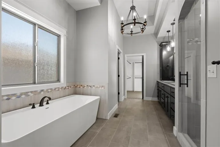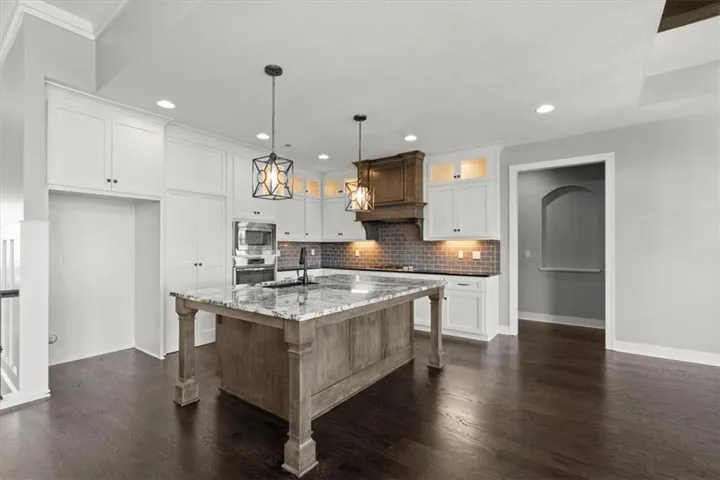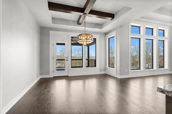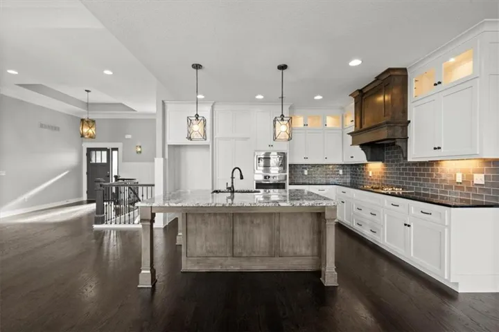 +"PublicRemarks": "COVETED FOREST VIEW! This stunning home greets you with NEW gleaming 5" hardwood floors and amazing views of wooded greenspace through floor-to-ceiling windows in the open-plan great room, kitchen, and dining area. The kitchen features large, walk-in pantry, wall-oven and -microwave, NEW gas cooktop, NEW dishwasher, huge island with granite countertops, and loads of counterspace. Continue to enjoy the view on the covered, composite deck. First-floor primary en-suite features a free-standing soaking tub, spacious shower with rainshower head, quartz double-vanity with fabulous storage space, and walk-in closet which flows into the well-appointed laundry room. 2nd bedroom is on the first floor with full-bath access. Generous mudroom off the 3-car garage. Find the same dazzling views as you enter the walk-out lower level with large rec room starring a wet bar, plentiful counterspace, and built-in cabinets. 3rd and 4th bedroom with full bathroom, private vanities, and walk-in closets on lower level. 5th bedroom also features a walk-in closet. Forest View is a Rodrock Community that features a 50 foot waterfall entrance, as well as amenities such as trails, playground, basketball and pickleball courts, sand volleyball court, and a zero-entry pool. Conveniently located just minutes from major highways, shopping, Lake Quivira, and Cedar Niles Park. DO NOT MISS THIS AMAZING HOME!"