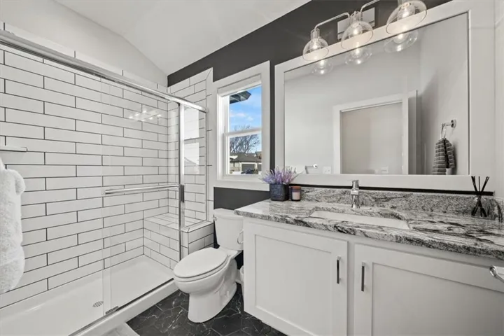 "LongDescription" => "Full bathroom featuring a spacious closet, double vanity, recessed lighting, and dark tile patterned floors"