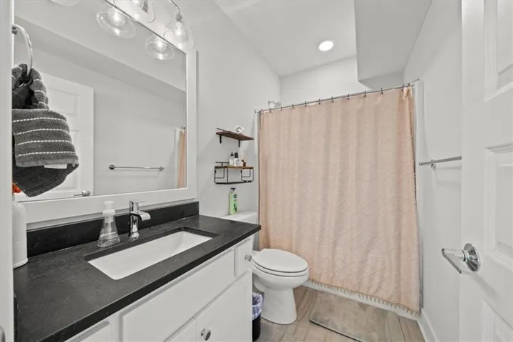 "LongDescription" => "Bathroom with vanity and dark wood finished floors"