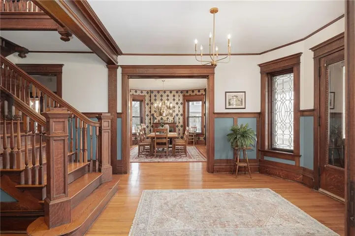 Step inside this 1906 prairie-style masterpiece, originally the Quentin/Douglas home, and prepare to fall in love. From leaded-glass windows and soaring ceilings to intricate woodwork and multiple fireplaces, this home is packed with character. The chef’s kitchen is a showstopper—featuring an ILVE gas stove, custom vent hood made from original pocket doors, soft-touch cabinetry, pullout drawers, and a butler’s pantry that makes cooking and entertaining a breeze.\r\n
