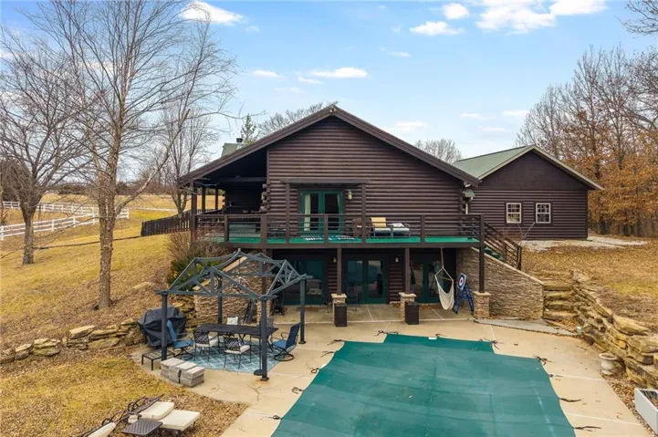 Escape to tranquility with this stunning 4,500 sq. ft. custom-built log home, nestled on over 20 acres in Ray County, Missouri. Perfect for horse lovers, this private retreat offers 3 bedrooms, 2 bathrooms, 2 non conforming bedrooms making a spacious layout that SLEEPS UP TO 20 GUESTS at once—ideal for family gatherings, reunions, or hosting friends. Look at all these features:\r\n