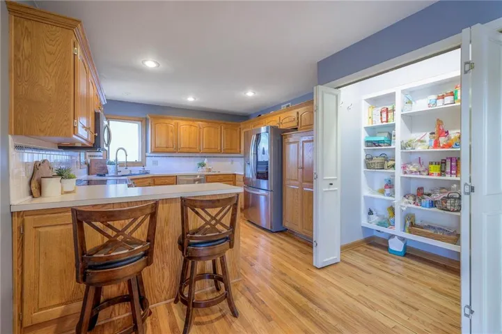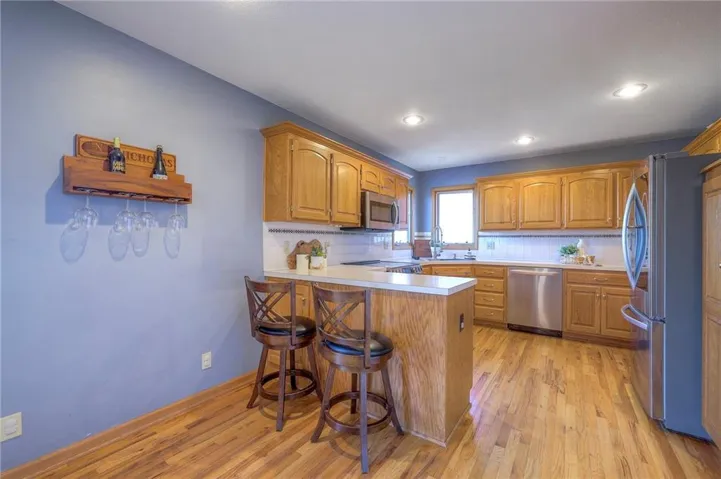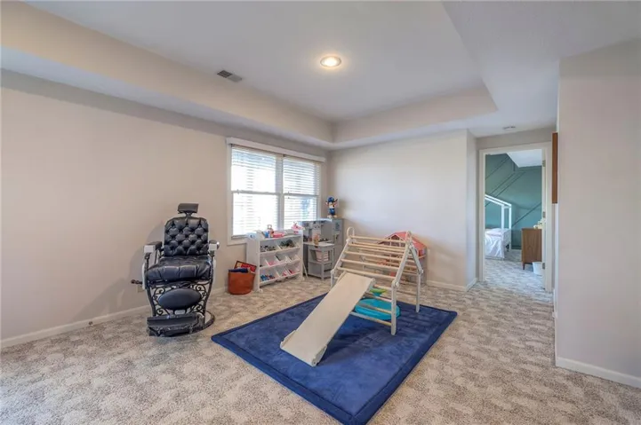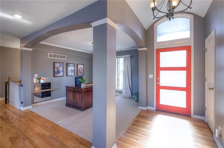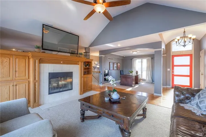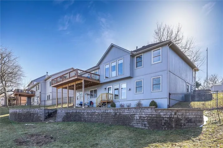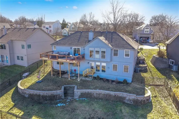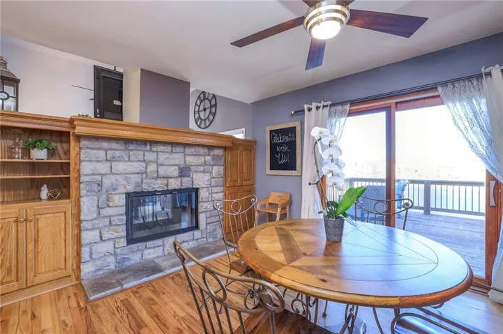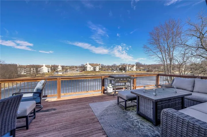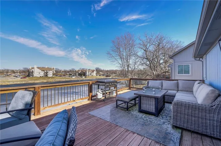 +"PublicRemarks": "This stunning Reverse 1.5 Story offers a perfect blend of comfort, convenience and natural beauty. Featuring TWO Primary Suites, it's ideal for mother-n-law quarters or multi-generational living. The main floor Primary Bedroom ensures easy access, while the main level living layout enhances everyday convenience. Step inside to discover TWO see-through fireplaces that create a warm and inviting atmosphere, including one in the Great Rm, where soaring ceilings complement the cozy stone and tile finishes. New carpet on the main level, new interior paint, a giant pantry and new flooring in the bathrooms. Lots of windows throughout the home provide breathtaking views of the lake, allowing you to enjoy the serenity of the water and nature from almost every room. A new, expansive 14'x27' deck and LL deck with stairs make outdoor entertaining effortless. All while the expertly landscaped yard, steel fence with two gates and newer roof/gutters and HVAC ensure the home is well-maintained. Inside, the spacious kitchen features stainless steel appliances, all replaced within the past five years. The finished LL offers two additional bedrooms, including one that can serve as the second Primary Suite with a giant walk-in closet. A see-through fireplace adds ambiance to both the BR and Family Room, while the Rec Room provides additional space for entertainment/playing or relaxation. With the expanded attic storage and extra shelving, there's plenty of room to stay organized. Whether you're unwinding with a book by the water, watching geese and ducks flock to the lake, or hosting guests, this home is where convenience meets relaxation - all while being close to literally everything! This Olathe highly desired Reverse has it all and in turn key fashion!"