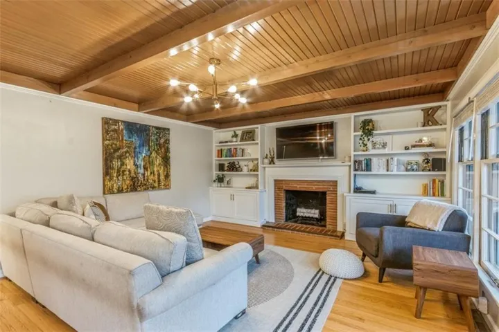 +"PublicRemarks": "Tucked back on a deep lot with established trees and plenty of charm, this ranch home offers the updates and nostalgia you're looking for. Covered front entry with room for seating. Charming front door leads to an entryway and guest power room. Oversized living room with custom built-ins and masonry fireplace. Warm and inviting wood ceiling runs the length of the living room and kitchen. Kitchen was recently fully-remodeled and opened to the living/dining area. Breakfast bar, stainless appliances, new cabinetry, farmhouse sink with window overlooking the backyard, pantry, gas range and custom trim work. Windows along the living room merge the inside and outside entertaining areas. Large, flat patio with privacy screen offers room for outdoor living and to enjoy the many perennial flowering plants, lovingly maintained by the owners. Fully fenced yard. Primary bedroom is large with a wall of closets. Custom woodwork features in two bedrooms. Fresh updates to full bathroom include new faucet, fixture and hardware. Two car garage and double driveway. Inground sprinkler system covers the yard and beds. Full basement offers room for expansion! Situated perfectly between the village shops and Corinth, you can easily make your way to shops, schools and parks. Not your average Prairie Village ranch!"