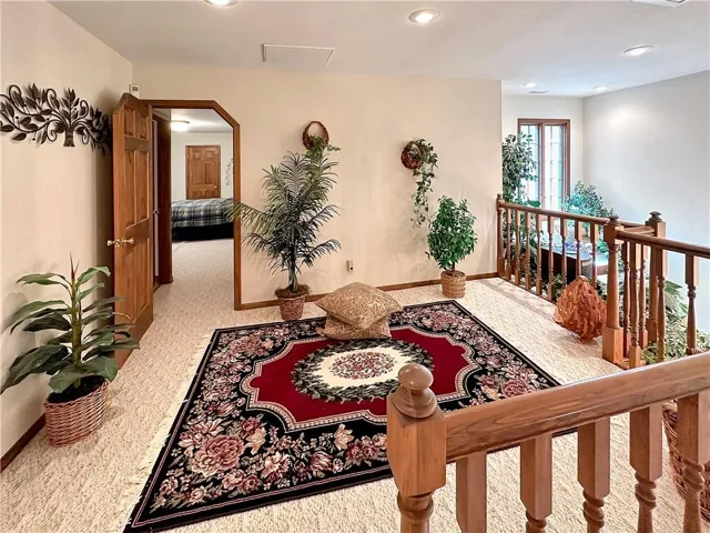 "LongDescription" => "Stairway featuring wooden walls, carpet, and wallpapered walls"