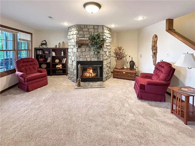 "LongDescription" => "Finished below grade area featuring wooden walls, carpet, a textured ceiling, and a fireplace"
