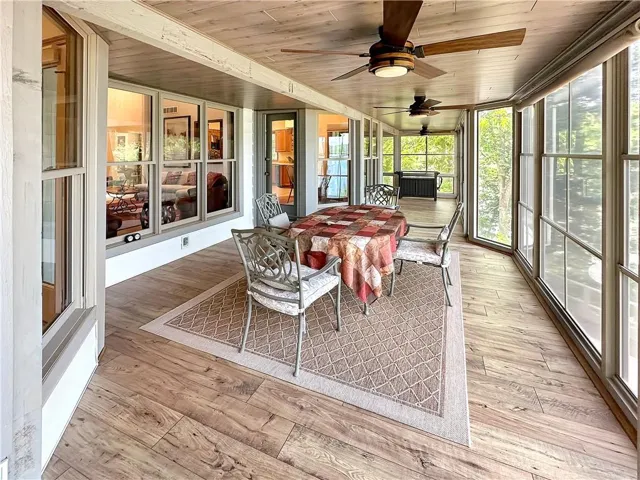 a convenient Jack and Jill bathroom. With three cozy fireplaces, a sunroom spanning the entire rear of the home, a\r\n