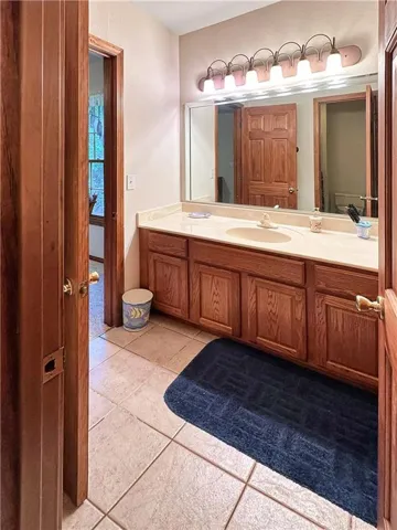 "LongDescription" => "Bathroom with a textured wall, vanity, a textured ceiling, shower / tub combo, and light floors"