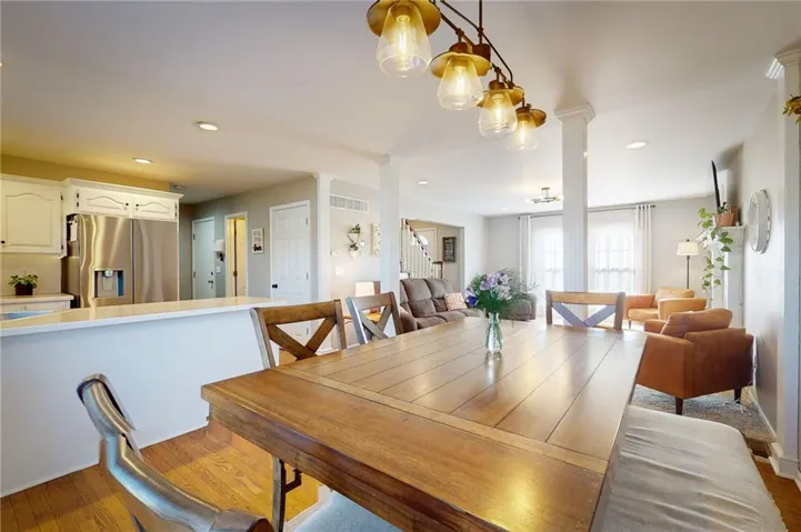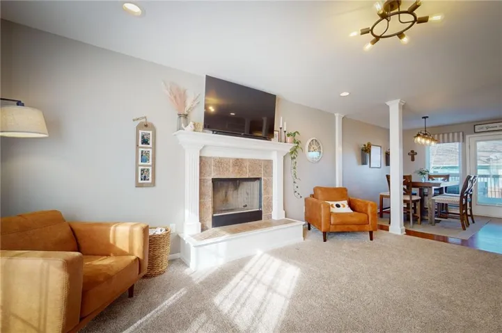Step into the inviting living room, where a cozy fireplace creates a warm and welcoming atmosphere. The space seamlessly flows into the dining area and kitchen, making it perfect for entertaining. The kitchen provides easy access to the half bath and a laundry room with extra pantry space for added storage and functionality.\r\n