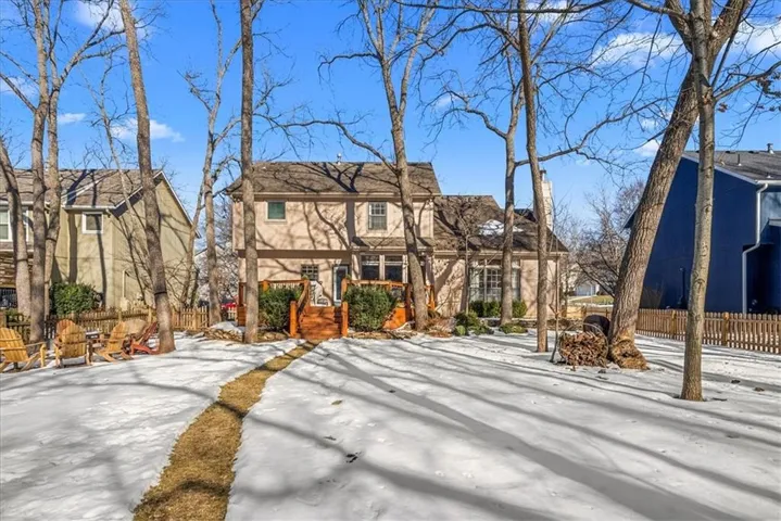 Welcome to this charming 4-bedroom, 2.5-bathroom home, nestled in the peaceful hills of Hidden Woods in Shawnee. Located in one of the most secluded and desirable neighborhoods, this 2-story home sits on one of the best lots, offering privacy and beautiful views of a creek and lush trees right in your backyard. Homes in Hidden Woods rarely come on the market, making this an incredible opportunity. The main level features an open-concept layout, with the kitchen seamlessly flowing into the dining room and living room, creating a spacious and inviting environment perfect for both everyday living and entertaining. Natural light pours in throughout the space, enhancing the bright and airy feel of the home. A dedicated home office on the main level provides a quiet spot for remote work or study, adding extra convenience to your routine. Upstairs, you'll find 4 spacious bedrooms, including a primary suite with an en-suite bath. The full bathrooms have been thoughtfully updated, while the half bath on the main level adds additional functionality for guests and family. The finished basement offers even more living space, perfect for a family room or play area. The neighborhood also offers a fantastic park for residents to enjoy, just a short walk away. With its combination of natural beauty, privacy, and peaceful surroundings, this home in Hidden Woods is a rare find. \r\n