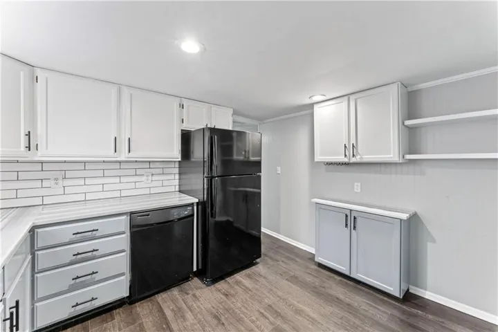 Welcome home, an adorable two-bedroom, two-bath that perfectly blends modern updates with cozy charm. Nestled on a desirable corner lot, this residence boasts an attached one-car garage (19x13 w/ 8x8 door) with plenty of extra room and is designed for both comfort and style. Retreat to the master bedroom where contemporary barn doors lead you into an expanded closet fitted with an organizer—making organization effortless! The nearby main full bathroom has also been tastefully updated to meet modern standards. Ascend the staircase to find the second bedroom, complete with its own luxurious full bathroom and an expansive walk-in closet—perfect for all your storage needs! The heart of this home is undoubtedly the remodeled kitchen. Recently updated, it showcases sleek black appliances including a low-profile microwave, gas stove, dishwasher, and refrigerator. The stylish white backsplash beautifully complements the new marble countertops while freshly painted cabinets add a touch of elegance. Whether you're whipping up gourmet meals or enjoying casual breakfasts, this kitchen is sure to inspire culinary creativity. This home has seen numerous enhancements that elevate its appeal: from new wall-mounted pot holders and garbage disposal to fresh gutter guards ensuring worry-free maintenance. The addition of a French drain next to the garage offers peace of mind during rainy seasons. Enjoy fresh aesthetics with new LVP flooring in three rooms and a mudjacked garage floor that enhances durability.\r\n