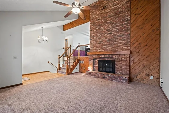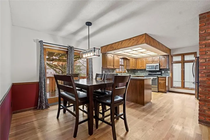 +"PublicRemarks": "Walk into a beautiful living room with vaulted ceiling and floor-to-ceiling brick fireplace (gas starter) with lovely wood accents. The charm continues to the kitchen where you will find more exposed brick, plenty of cabinets, a nice island, and a spacious dining area! Covered deck off kitchen & lower level deck below! 3 Bedrooms and 2 bathrooms on the upper level. Primary suite has 2 closets, cathedral ceiling, and awesome wood floors! Lower level features a half-bath and a great bonus recreation or family room with a 2nd fireplace (gas), built-in shelves and a great wet bar with beverage fridge for all your entertaining! From there, you can walk out to your lower level deck and large fenced-in yard! The garage features a built-in storage room + plenty of additional storage space! Laundry area + more storage in the sub-basement!"