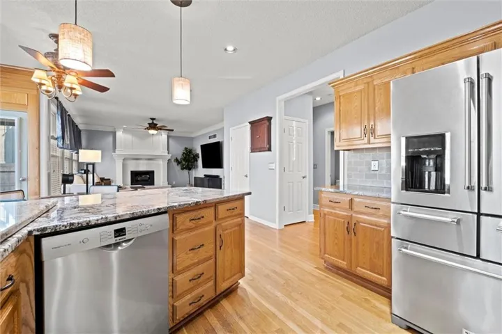 +"PublicRemarks": "Gorgeous Brick 2 Story home in Coveted Northwood Trails! The perfect place to host family and friends with a fantastic open floor plan and private backyard setting that backs up to the neighborhood trail. The oversized kitchen, featuring stunning granite countertops and newer stainless steel appliances, overlooks eat-in dining and beautiful great room with gas fireplace. Step upstairs to a large primary bedroom with spa-like en suite and huge walk-in closet. En suite bathroom offers dual vanity, rain shower and freestanding soaker tub. The three other upstairs bedrooms are large with ample closet storage. Bring your imagination to finish out the basement - add a large recreation room to watch the big game or add a 5th Bedroom to host your guests. The private backyard is the perfect spot for a patio setting and play area for the kids or the pups. Kitchen appliances and washer/dryer set to stay. Northwood Trails offers a great community with social events, pool and trails that weave through the neighborhood. With all this house has to offer, you will love calling this house your home!"