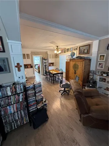 +"PublicRemarks": "MUST SEE HOME! Situated on an oversized corner lot, this beautiful 4-bedroom, one-and-a-half-bath home is calling! The large living room features a wood-burning fireplace that opens into the dining room area. The downstairs bedroom has half bathroom. Large kitchen with laundry room. Updated floors throughout the downstairs. The upstairs has three bedrooms and a full bathroom. Step out back to a deck that is perfect for entertaining, and a large backyard surrounded by a privacy fence. Detach 2 car garage has an upstairs bonus room great for a craft room or mancave. Look no further, this is a great home."