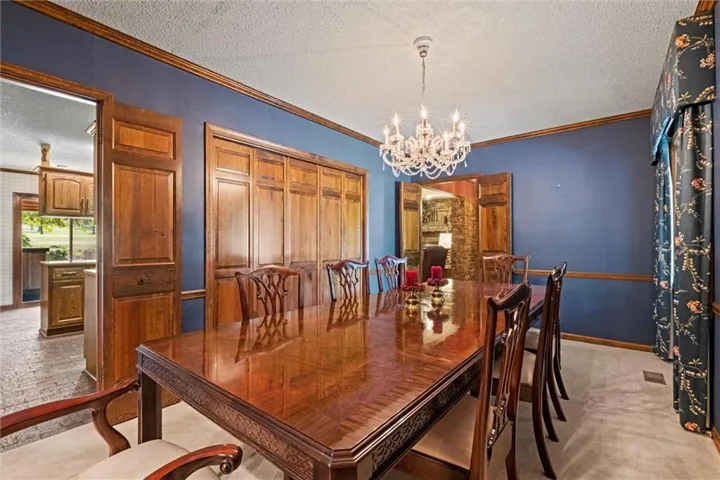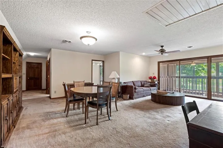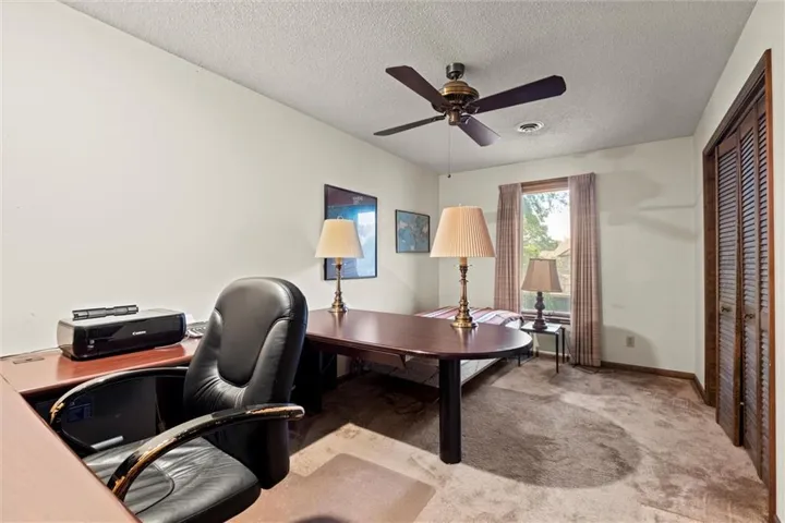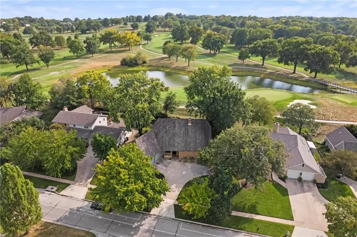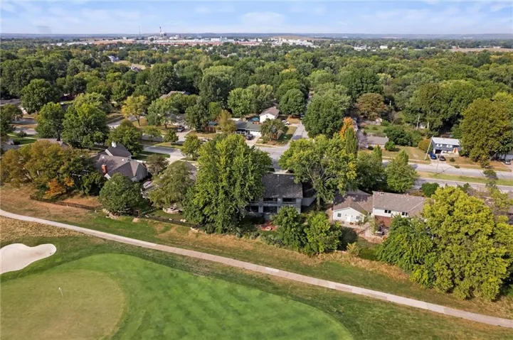 This is a Double-shell passive solar home positioned to appreciate the panoramic views from the 11th green of Lawrence Country Club from almost every room. As this amazing home captures the sun, the monumental stonework and fireplace will capture you. Relax in your favorite easy chair and imagine this joy everyday. Main level primary suite, large living room with a built in wet bar, breakfast nook off the kitchen, walk-in pantry, and a gorgeous German crystal chandelier hanging in the dining room that will seat the entire family. Oversized 2 car garage provides the storage space you'll need. Find 3 more bedrooms upstairs with another spacious family room, as well as the bonus game room above the garage.\r\n