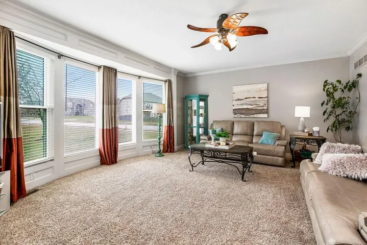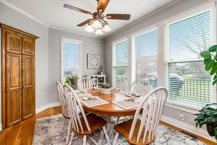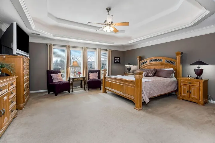 +"PublicRemarks": "Your Forever Home Awaits! This stunning home offers the perfect blend of space, comfort, and elegance. The spacious kitchen is a chef’s dream, featuring a large island, walk-in pantry, granite countertops, gleaming hardwood floors, and stainless steel appliances. A cozy Hearth Room with a see-through fireplace seamlessly connects to the Family Room, where a bowed bay wall of windows fills the space with natural light. The formal dining room impresses with a decorative ceiling and elegant wainscoting. Convenience abounds on the main level with a stylish powder room and a large laundry room, complete with a sink and built-in cabinetry. From the grand two-story entry, ascend the split staircase to a cozy loft space with a skylight. The massive primary suite is a true retreat, boasting a lighted double tray ceiling with crown molding and an abundance of natural light. The spa-like primary bath features heated tile floors, heated shower floor and seat, a whirlpool tub, a spacious tiled walk-in shower, dual vanities, and an oversized walk-in closet. Each additional bedroom offers private bath access, ensuring comfort and privacy for all. The full basement provides endless possibilities—use it for extra storage or finish it to your liking. With two HVAC systems and two 50-gallon water heaters, this home is designed for efficiency and comfort. Step outside to the expanded, covered Trex deck, perfect for enjoying the changing seasons. Nestled in the sought-after Monarch View community, you'll have access to two stocked fishing ponds with scenic walking trails, a resort-style swimming pool with a slide and baby splash pool, playground facilities, and a party room for gatherings. Don’t miss this incredible opportunity—schedule your showing today!"